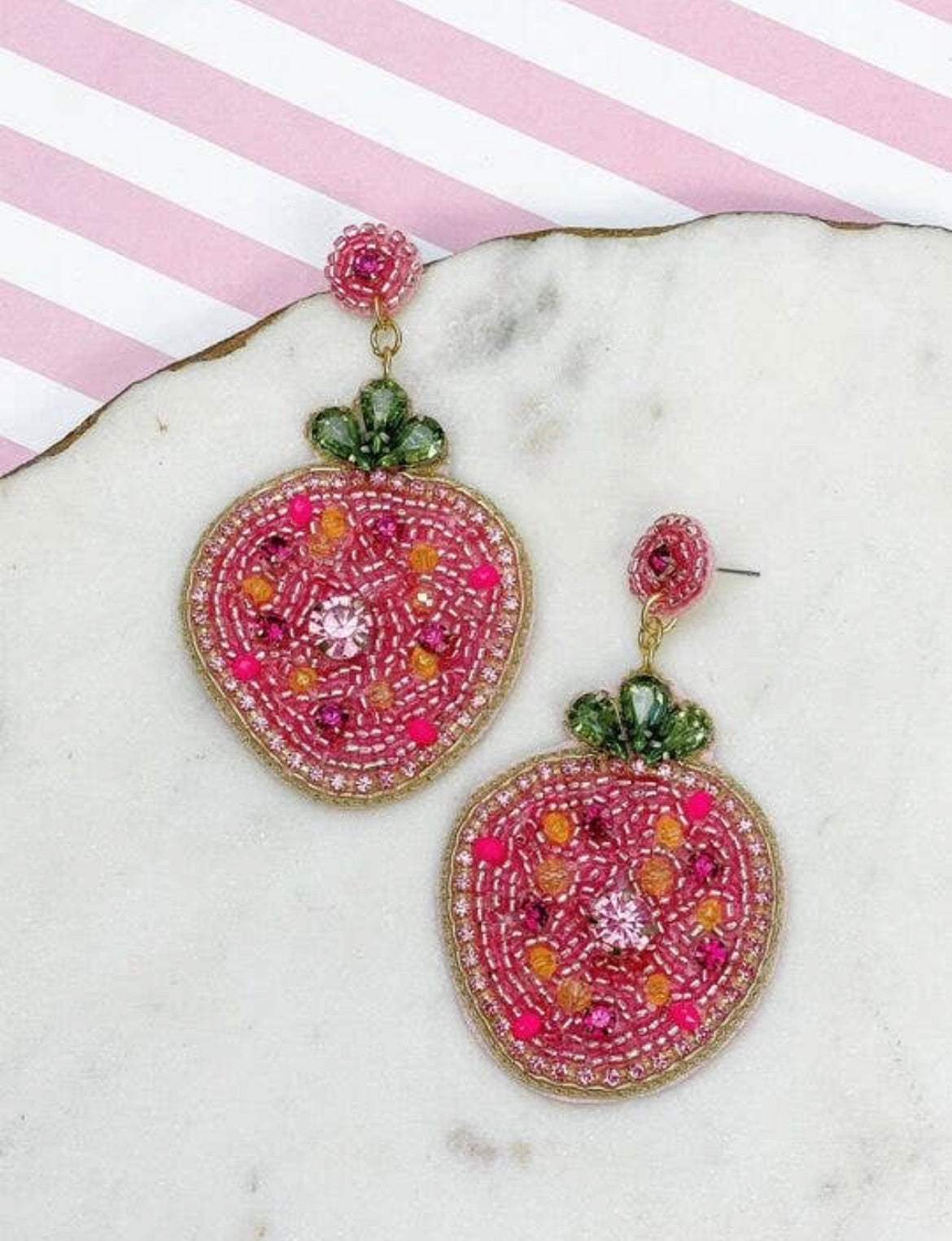 These just might be the most perfect strawberry earrings ever! The rhinestone detail makes these extra glam!