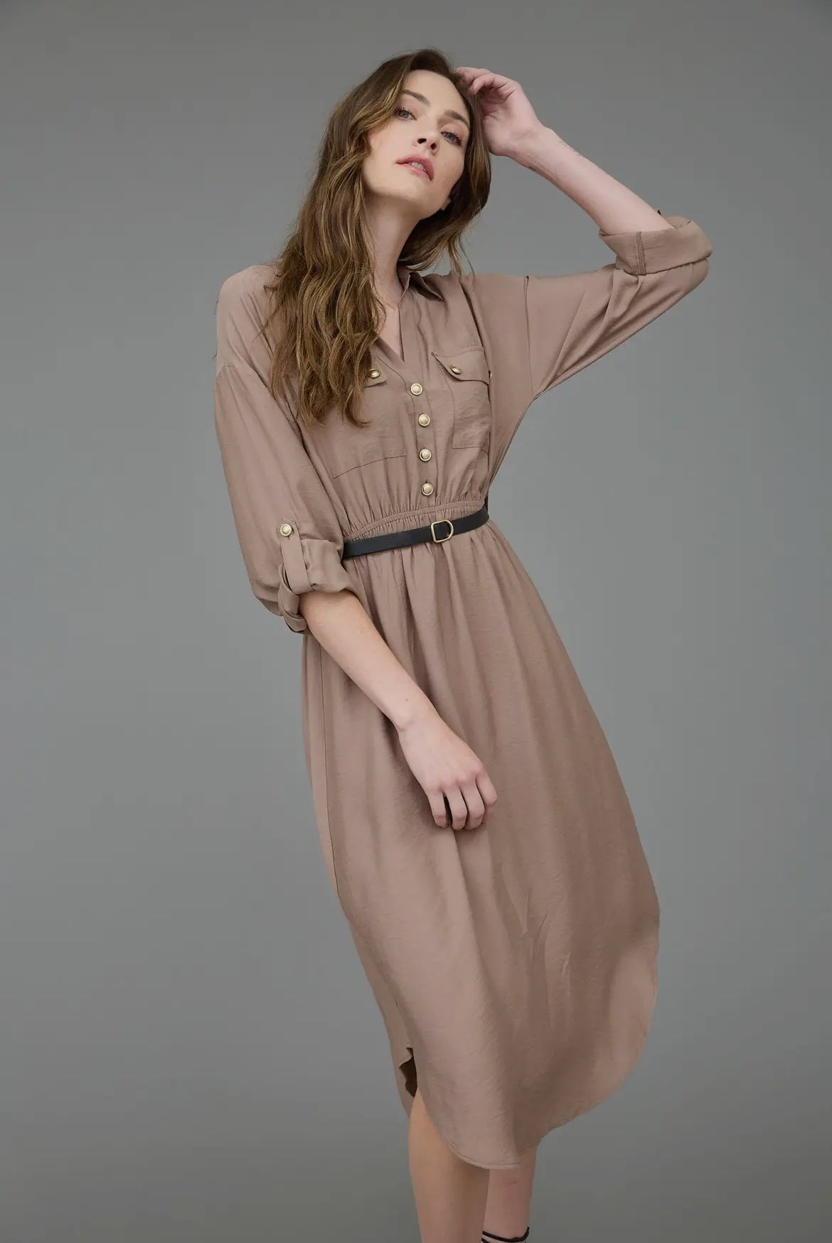 Ooh girl, she’s classy! This pretty, neutral dress is a legit staple. For work, church, shopping, you name it. Complete with a contrasting belt for a super polished look.