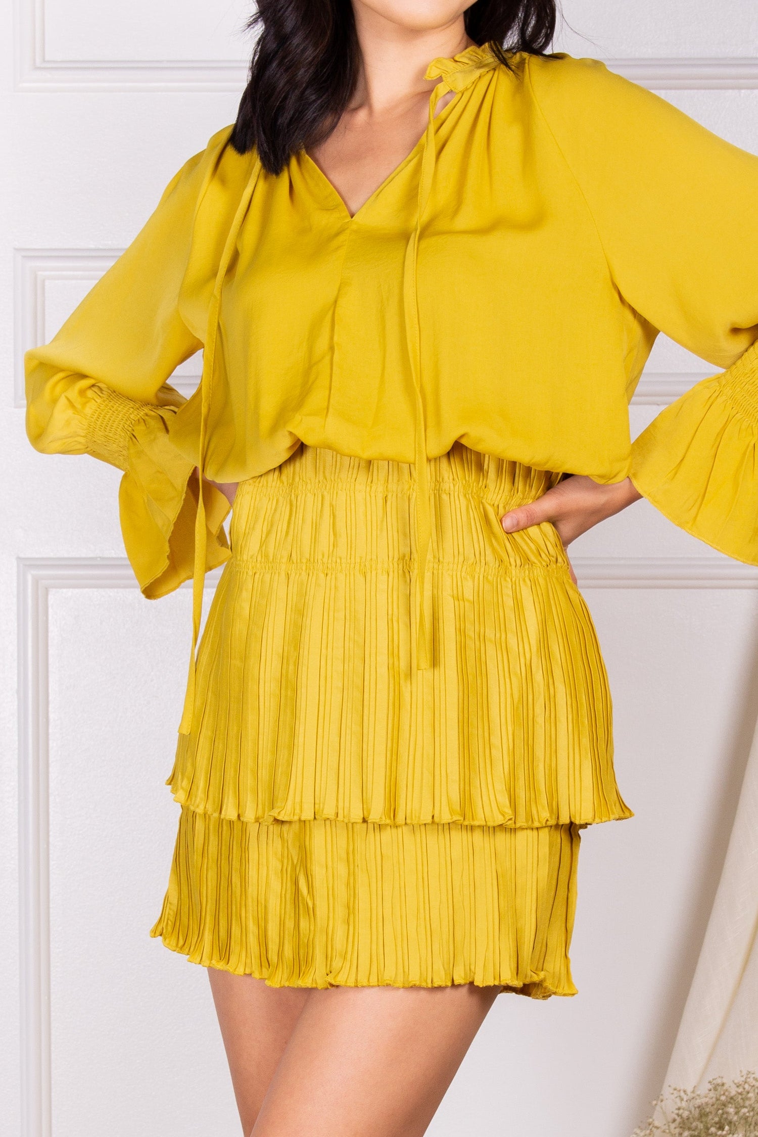 Satin Pleated Long Sleeve Dress