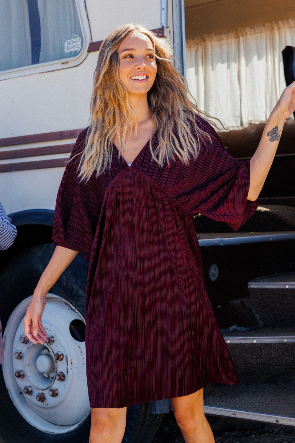 This dress is both gorgeous and comfortable, which meets all the criteria for a good party dress, in my opinion. The velvet corduroy fabric is so perfect fot the holidays and beyond. Dress it down with sneakers, like the model, or add heels and accessories to glam it up!