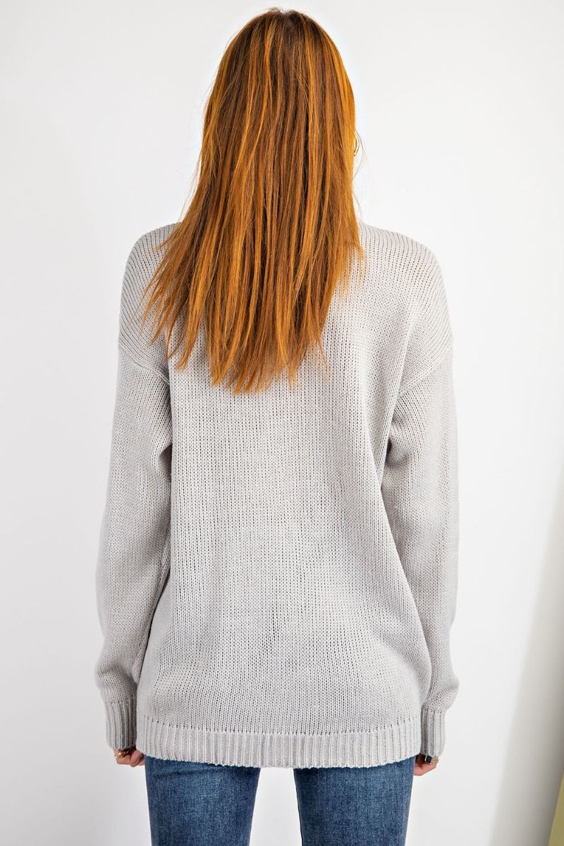 Cozy and oversized, great with a pair of leggings or skinny jeans.