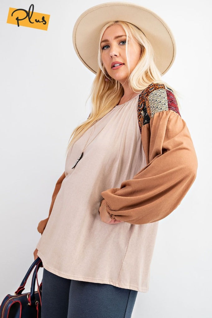 If your aesthetic is neutral with a little extra personality, this adorable top is for you. An elevated version of your classic long sleeved tee, with puff sleeves and an easy fit.