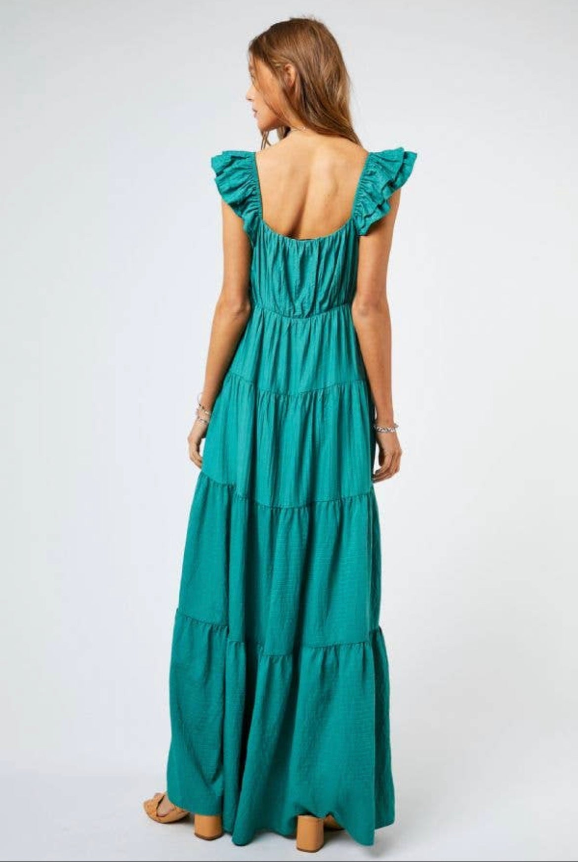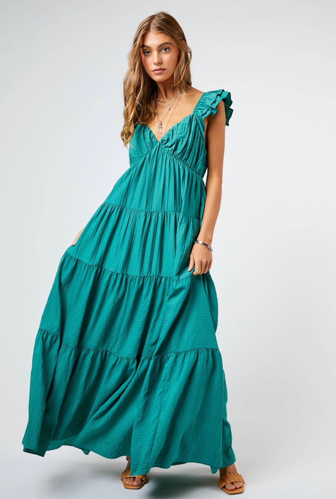 Jade Ruffle Sleeve TieredMaxi Dress