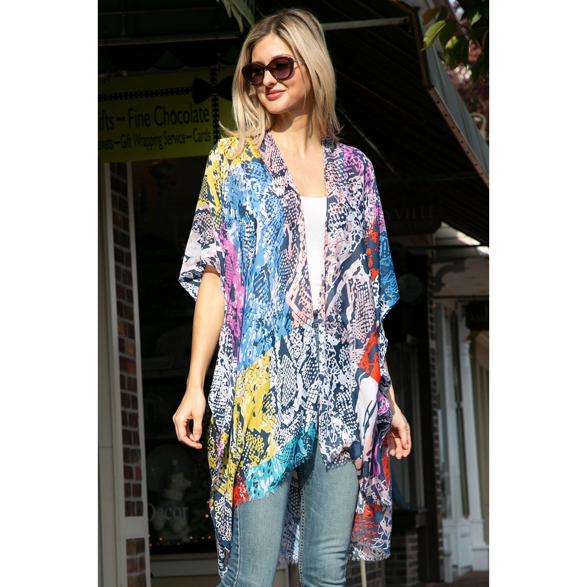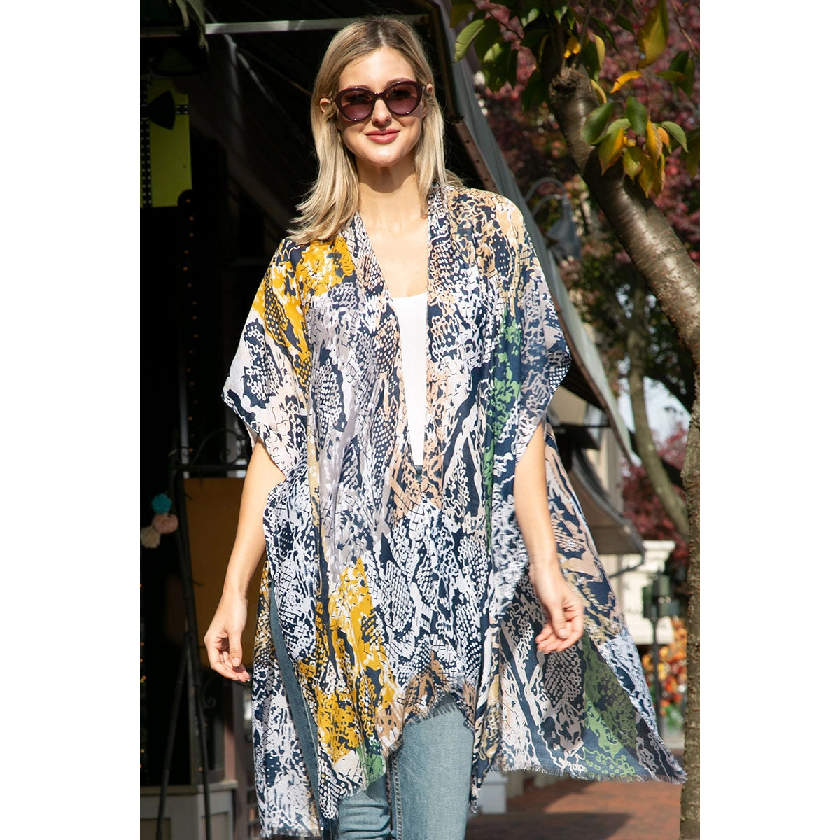 Amplify your outfit with this fun and artsy kimono.