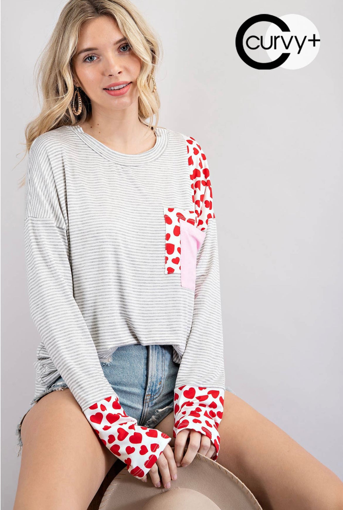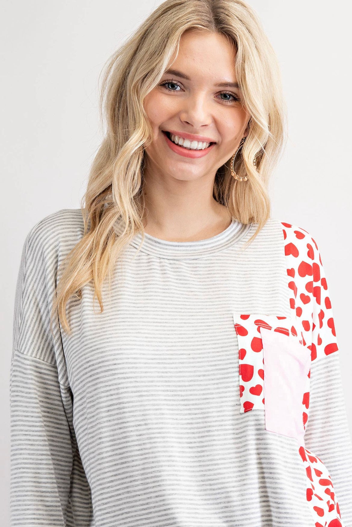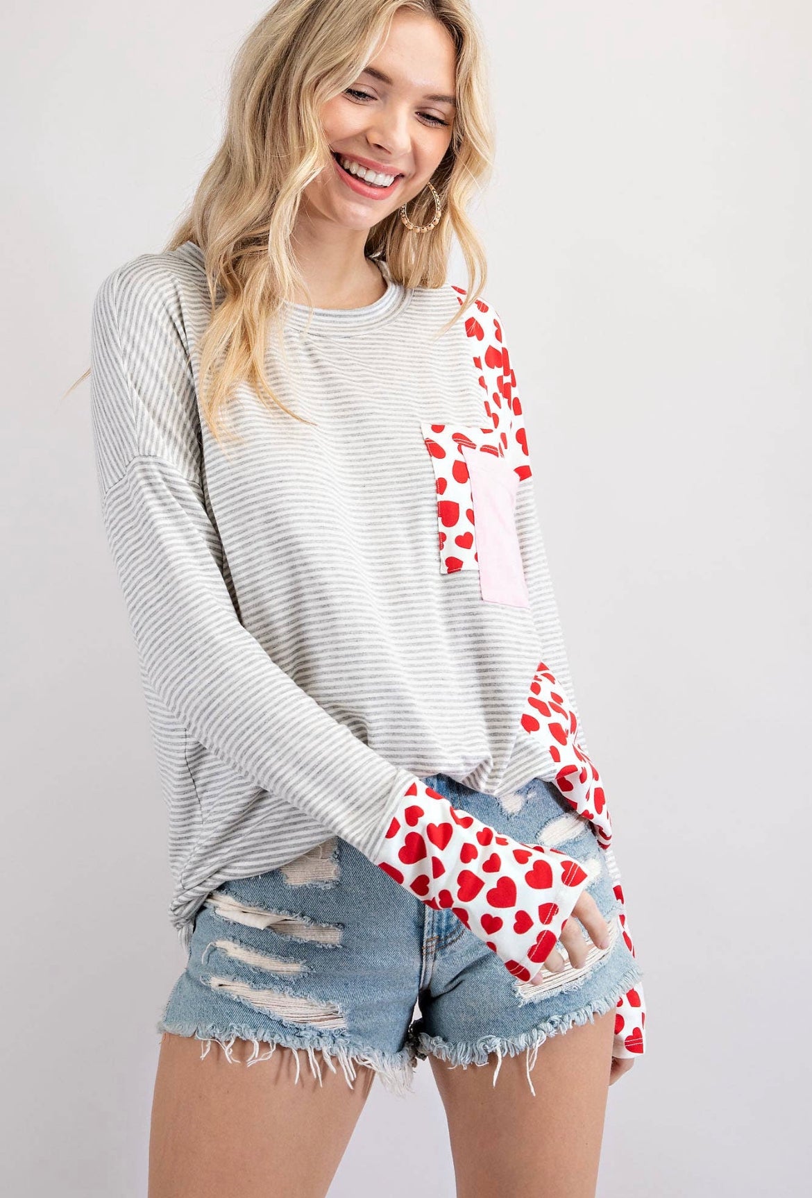If you love love like I do, you need this adorable top with double pocket detailing and cute heart accents!