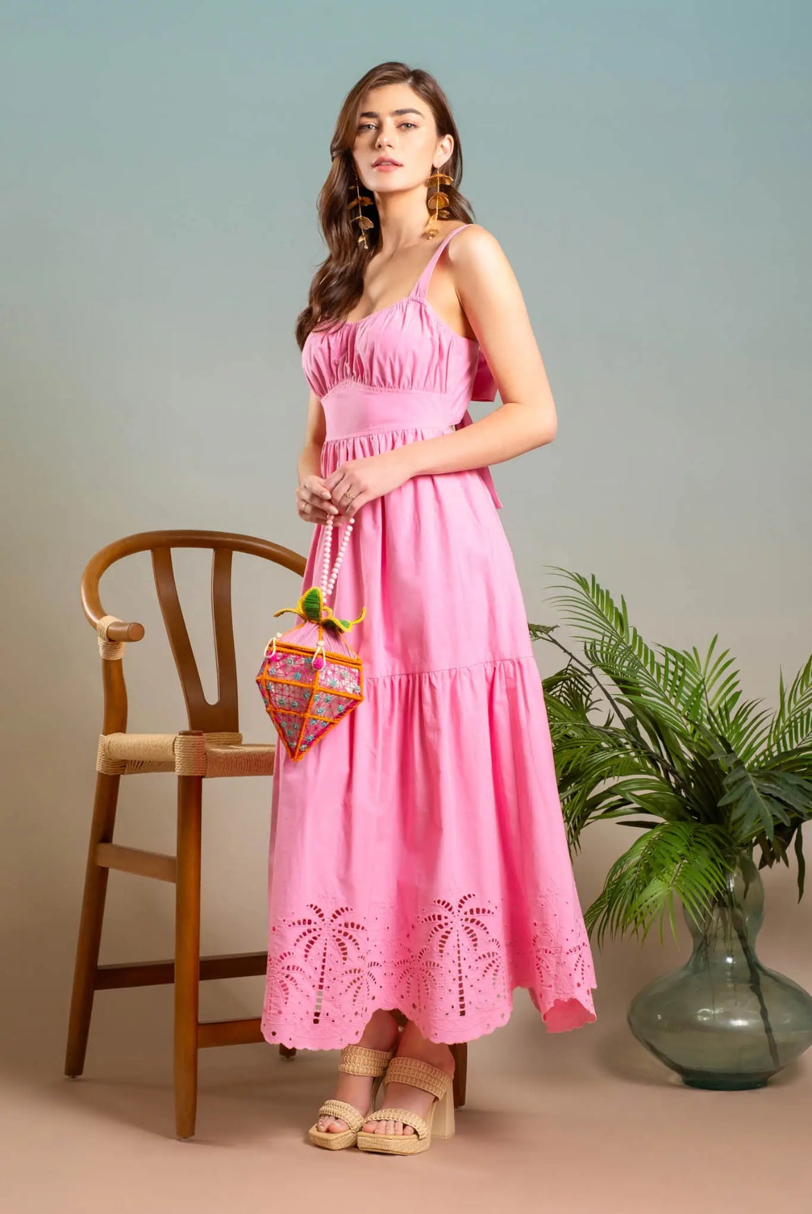 Feeling like you need a vacation? This is the perfect frock. The top offers full coverage for all busts, with hint of sexiness, and a tie back for a customized fit. The palm tree eyelet hem is giving tropical vacation. 🌴 🍹 ☀️