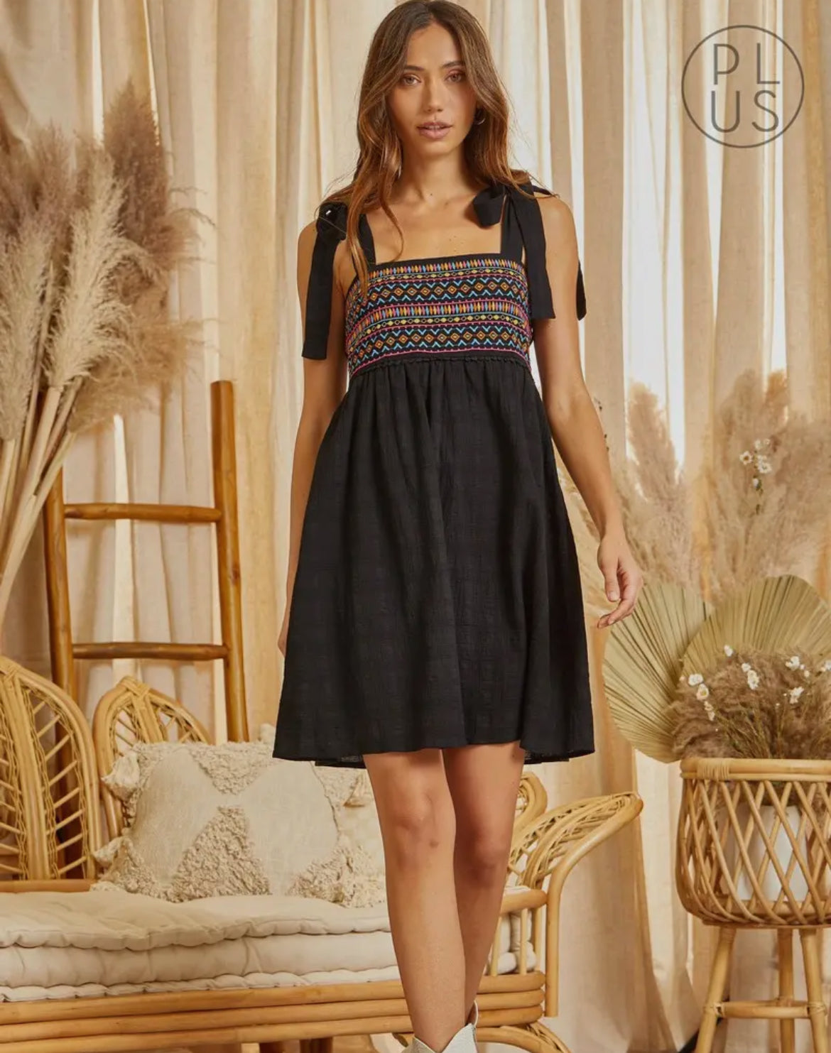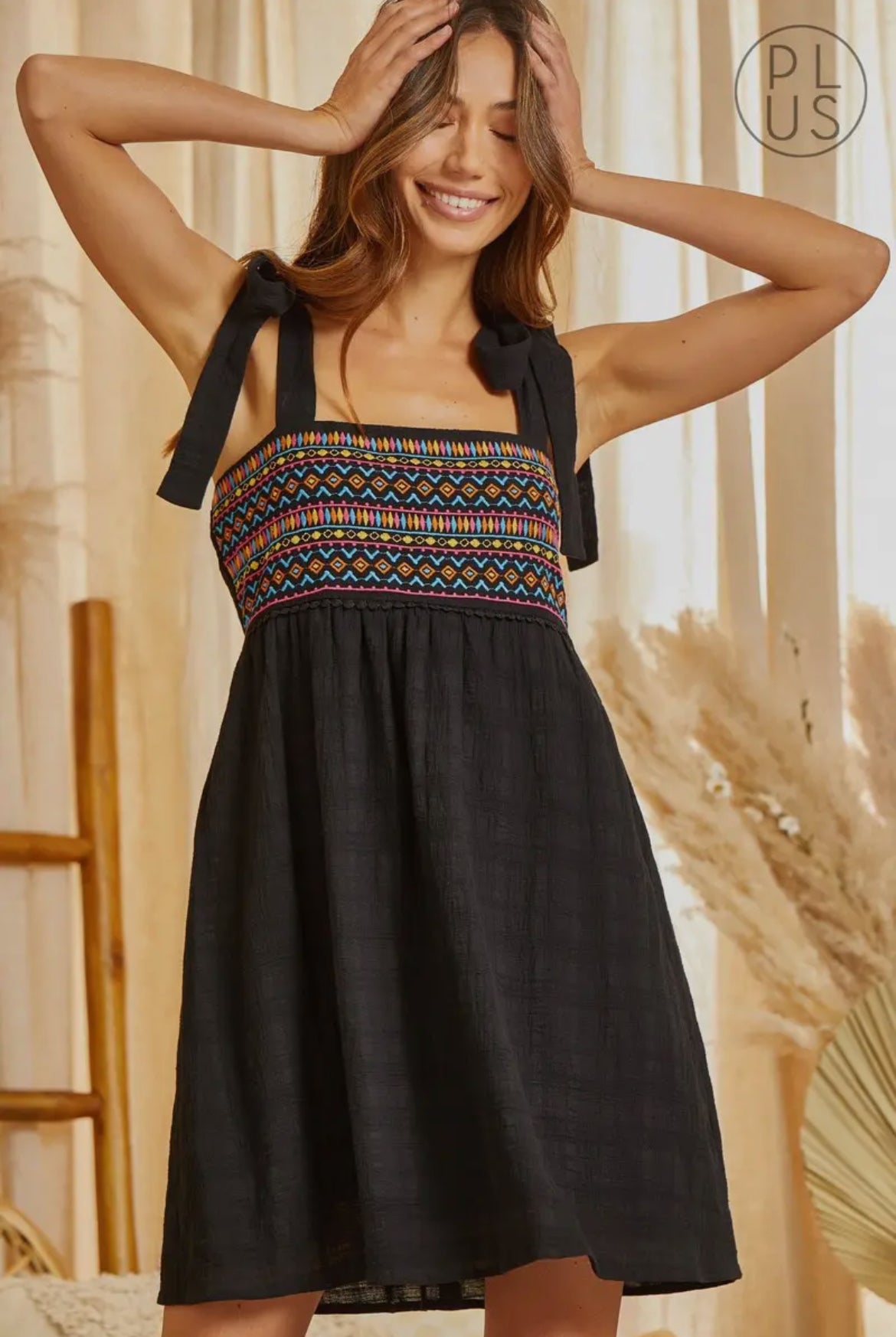 You’ll be ready to party as soon as you slip on this super fun dress! Plus, you can never go wrong with black! It’s perfect for just about everything. Dress it down with sneakers and a denim jacket or be ready for vacation with flip flops and a floppy hat!