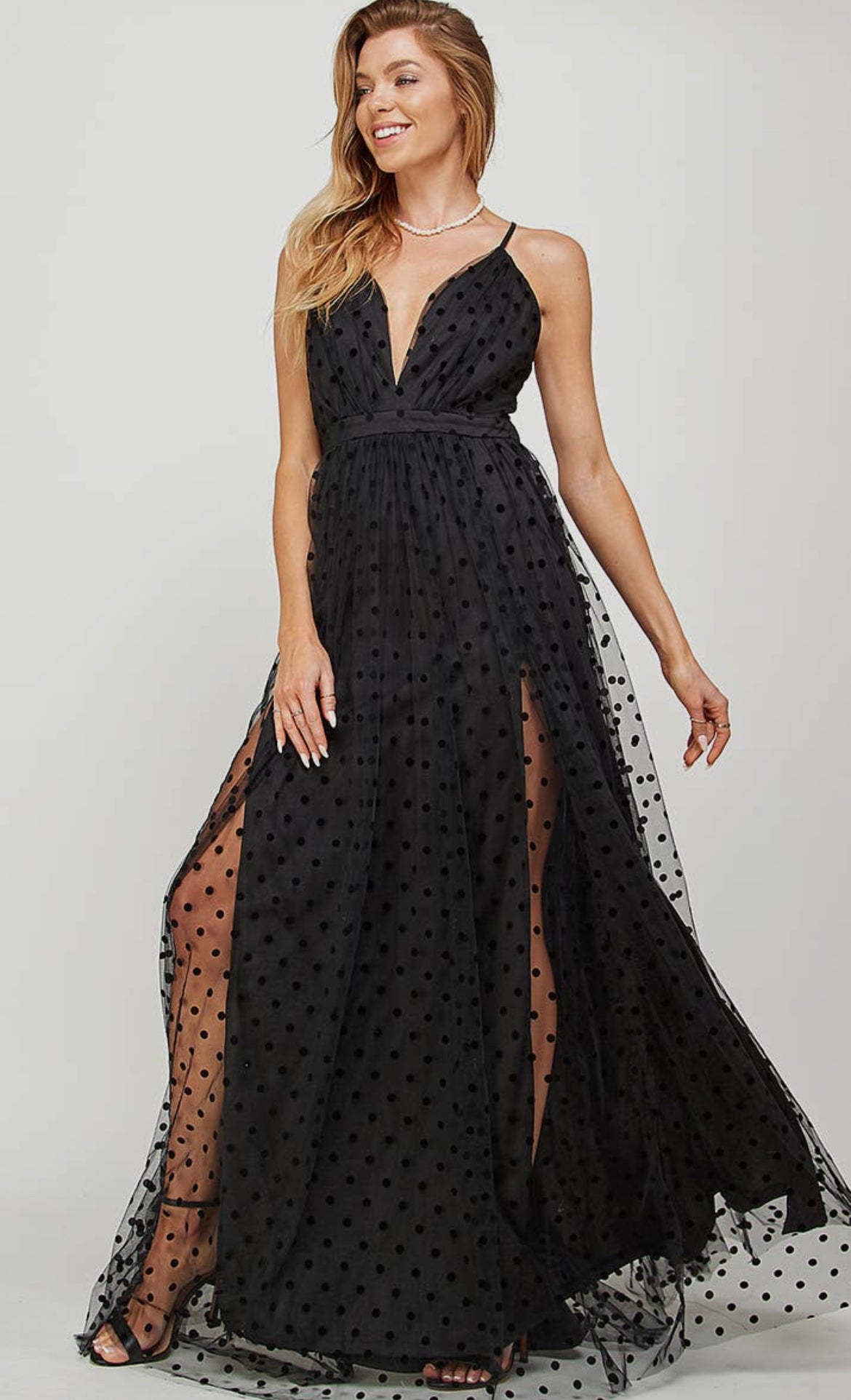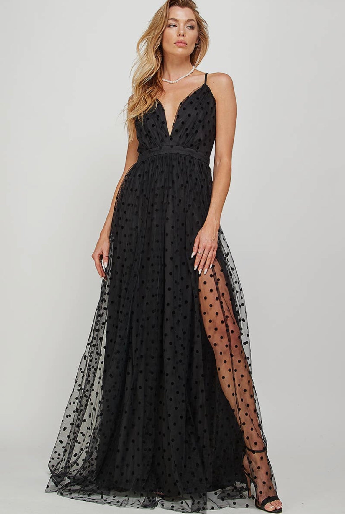 Preston Maxi Dress With Sheer Polka Dot Overlay