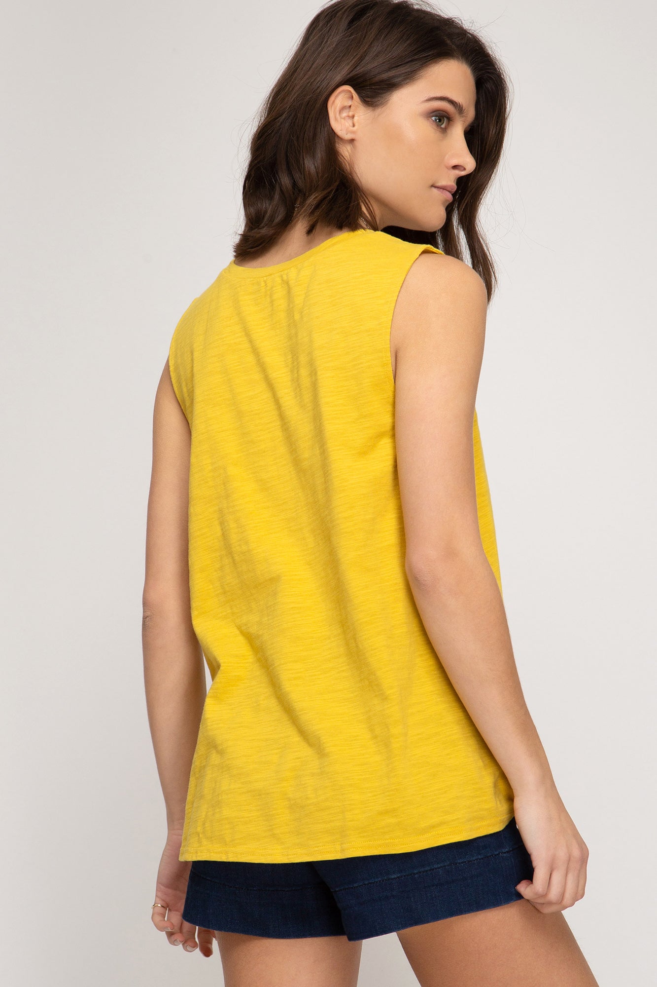 This little sleeveless top is simple and super casual.