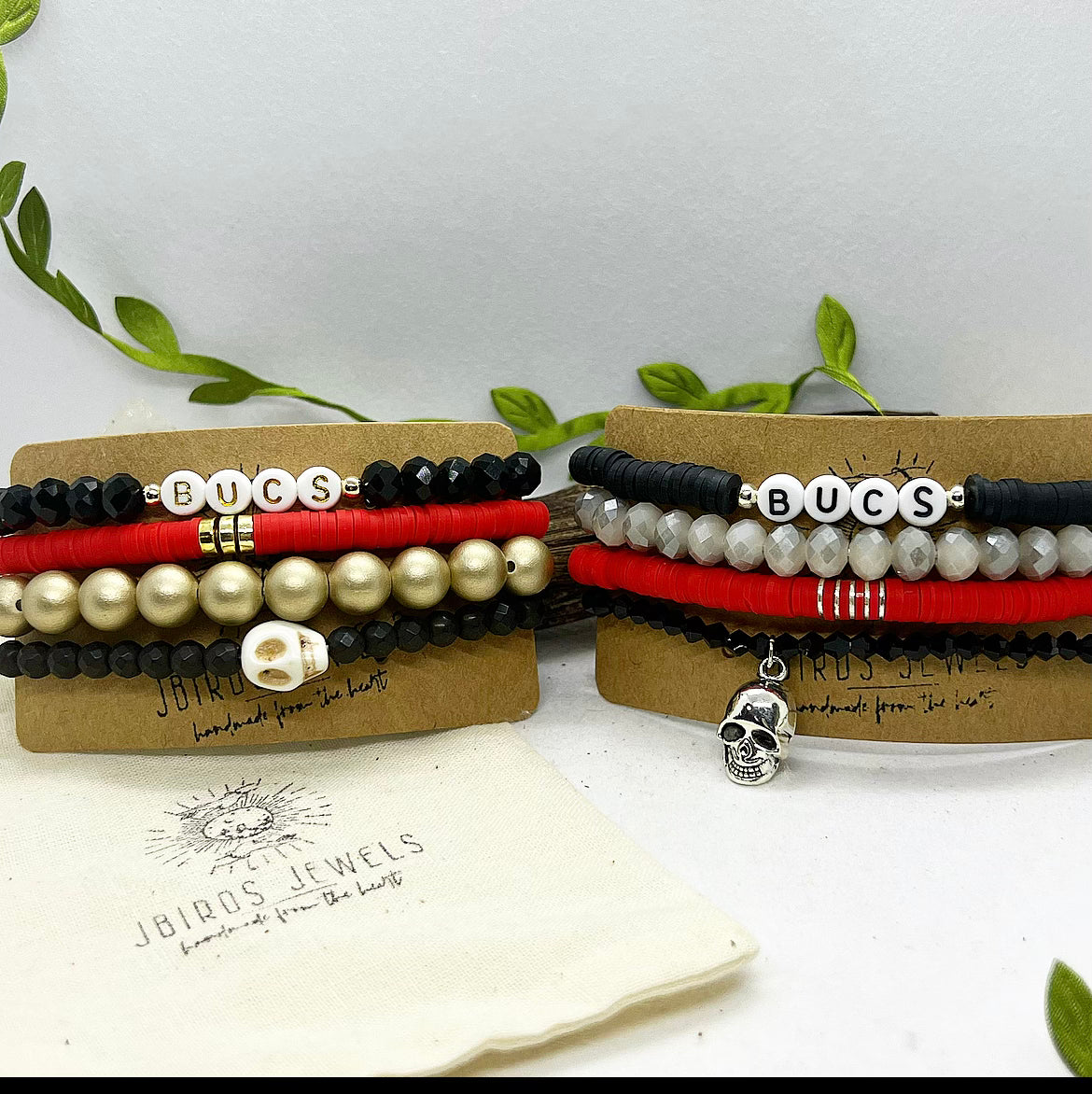 LFG Bucs! No 2 bracelets are exactly alike. Handmade by JBirds Jewels in Plant City, FL. ❤️🖤