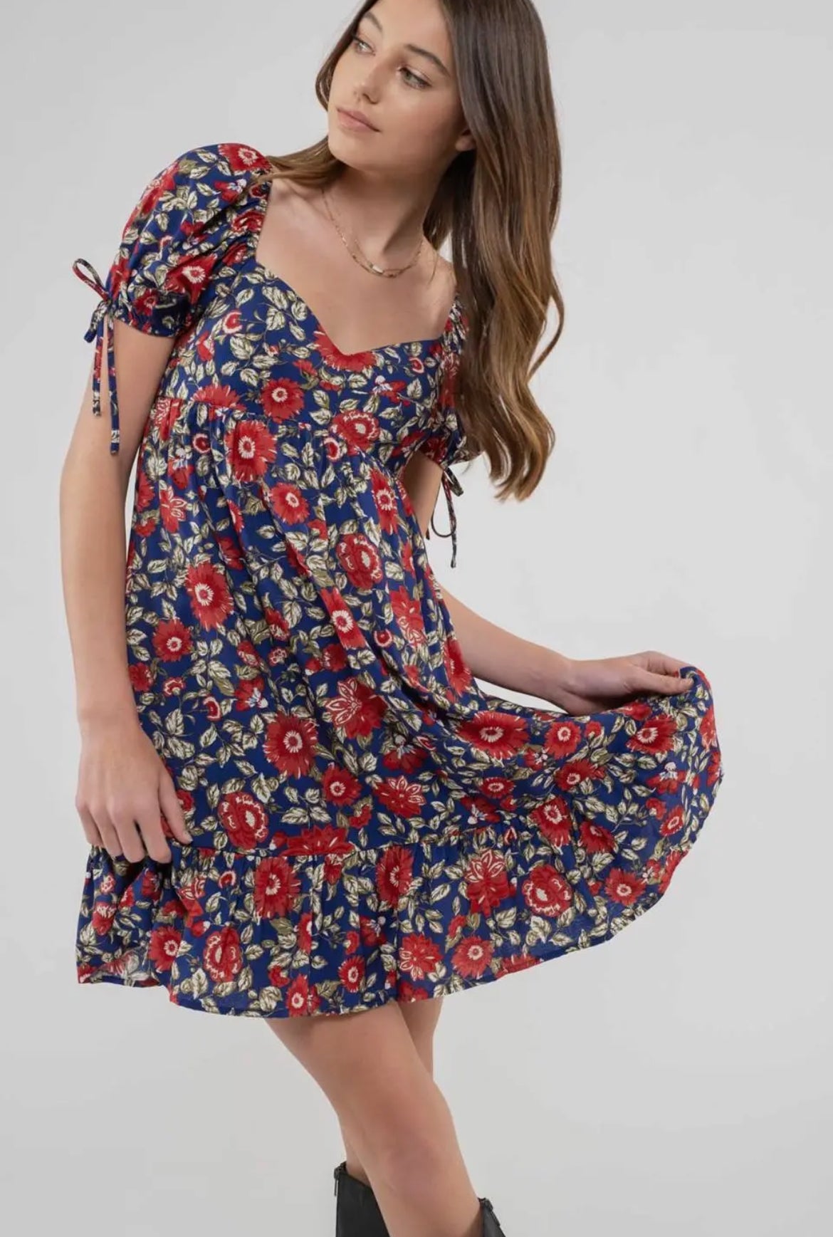 Details are everything when it comes to this sassy little number! We just love the girly tied puff sleeves and sweetheart neckline! Modest enough for church but cute enough for date night. Pair this adorable dress with flat sandals and a crossbody bag for a trip to the farmers market or dress it up with some strappy heels and a clutch!