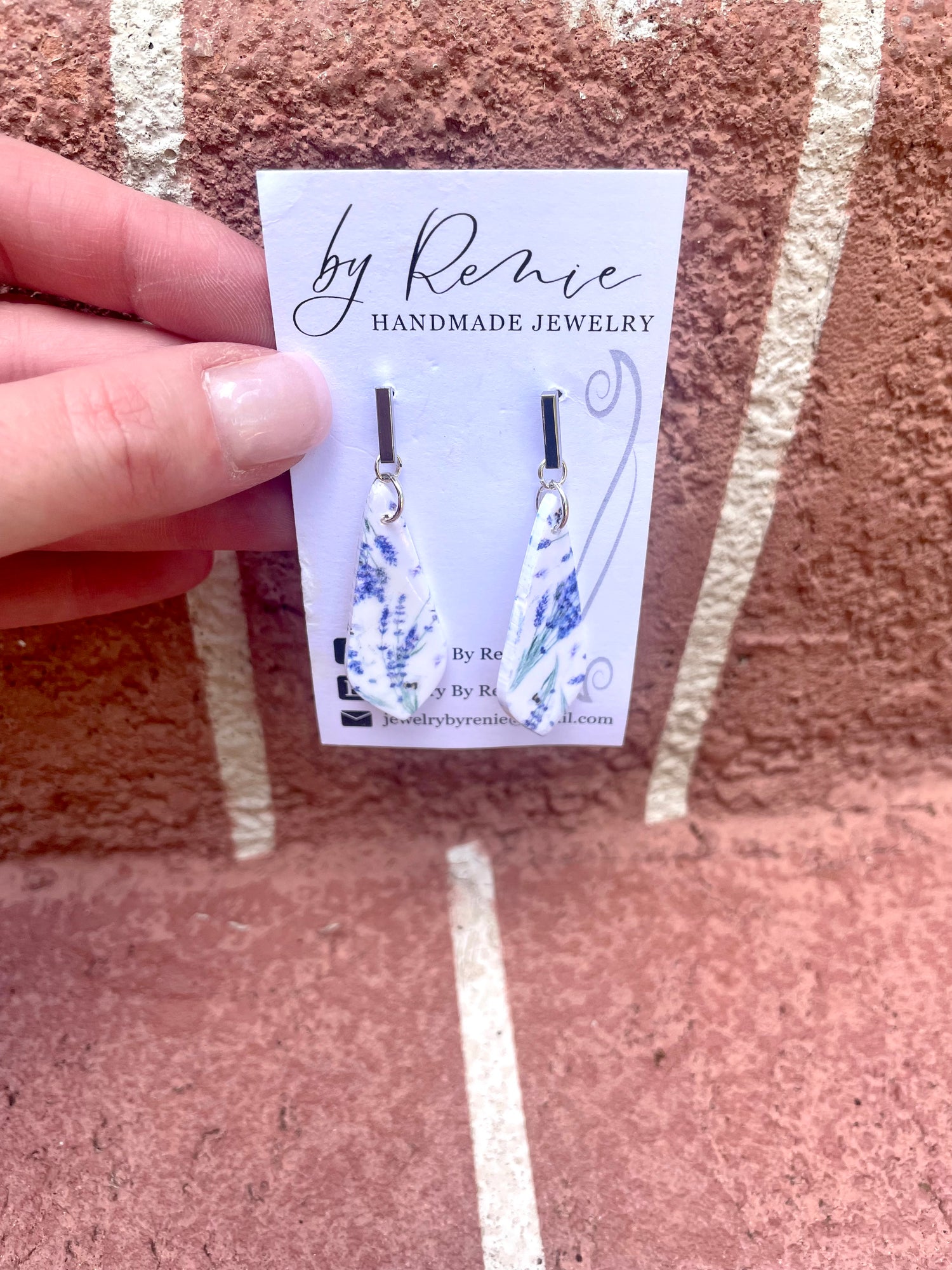 These pretty and dainty drop earrings have the airiest look with a floating lavender bouquet print. You can’t help but feel happier whenever you wear them!