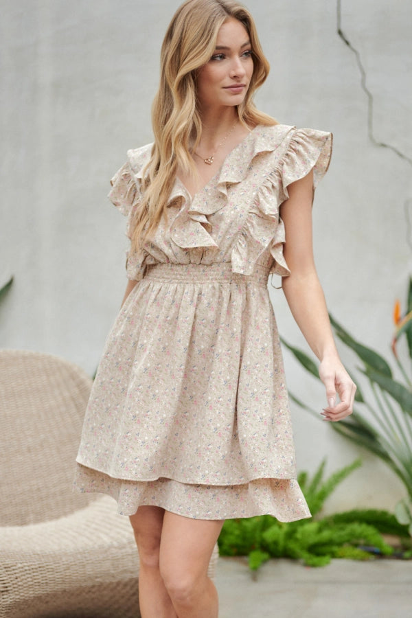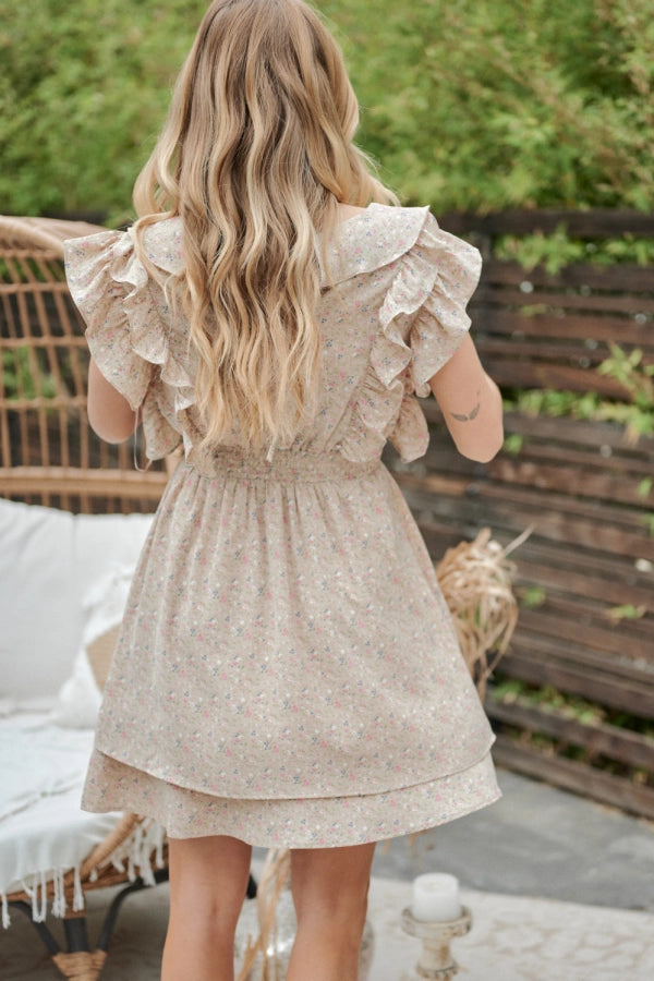 Ready for an afternoon of frolicking though wildflowers, talking to animals, and picnicking? 🧺  This is the outfit. It’s got so many cute details from the gorgeous ruffle neckline to the layered skirt to the dainty tie in the back to the perfect pink ditsy floral print.Â