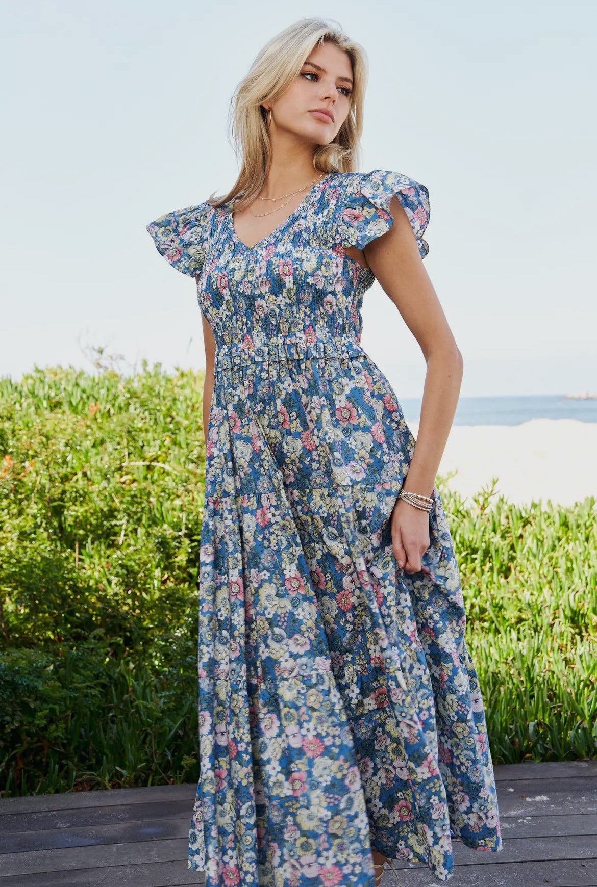 Willa Plus Smocked Flutter Sleeve Midi Dress